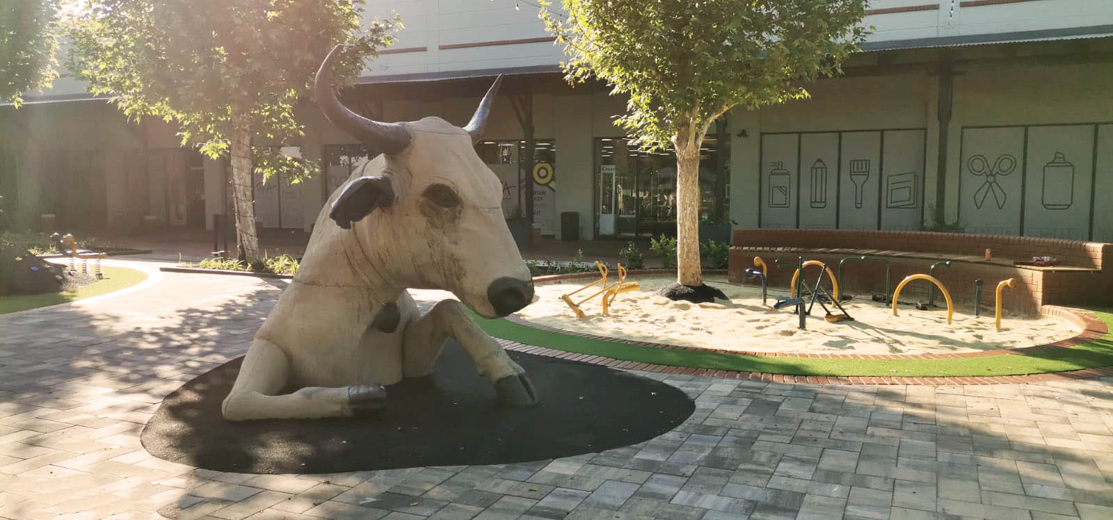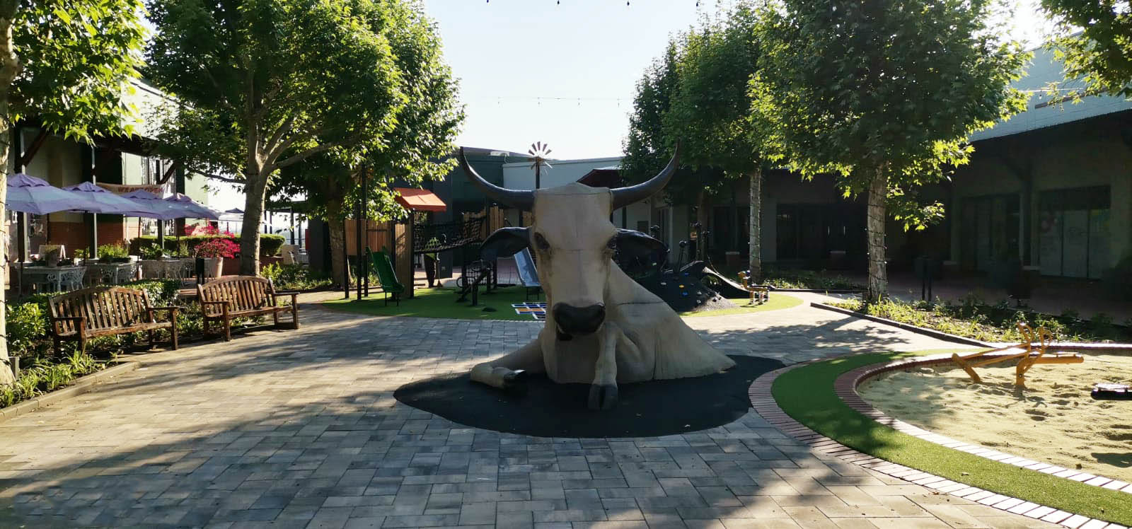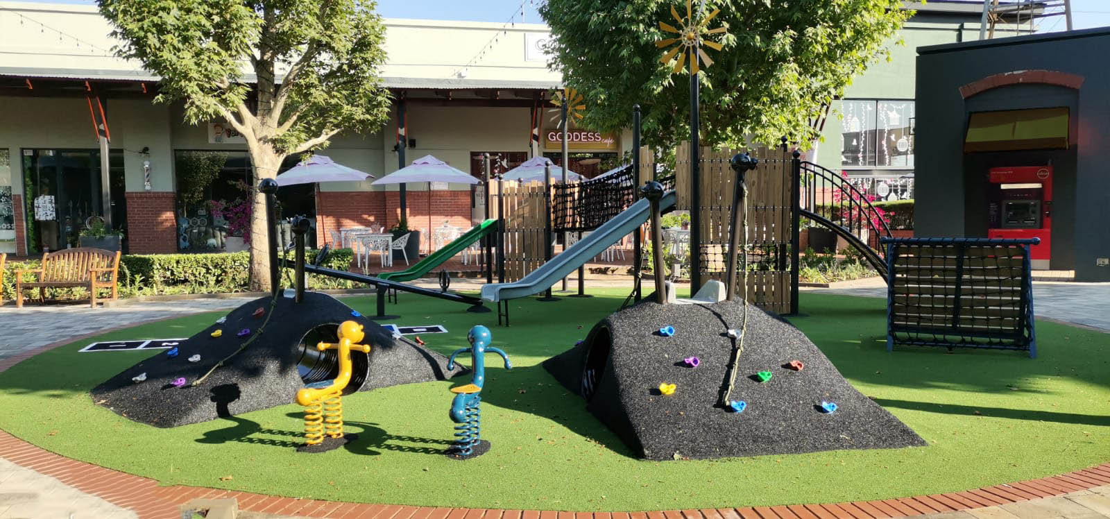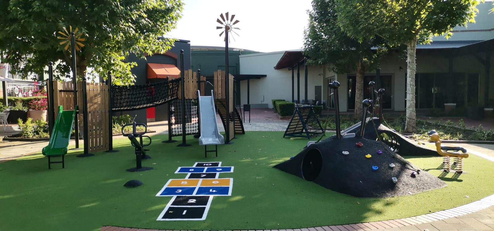 The existing square was underutilized consisting of desolate hardscape reminiscent of a previous water feature. Soft edges and round shapes were introduced to soften the hard edge from retailers to the square. The play area has been designed around different age groups and with an understanding of the parental proximity requirements as well as age appropriate stimulation, with for instance benches at the sandpit for the younger toddler’s parent and the bigger play elements closer to where the external restaurant seats are. Access points were placed between landscaped planters to not only allow natural flows, but further assist with visual tracking of children and creating a safe play environment.