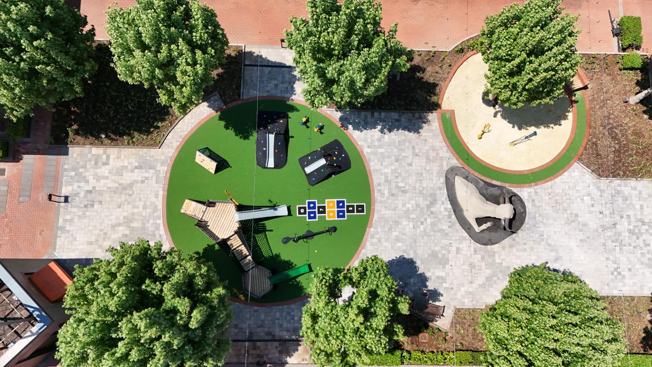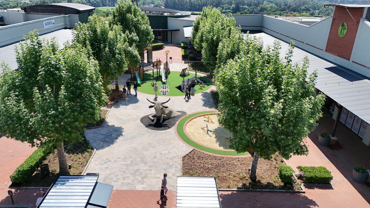 Life has been introduced to the existing square by creating age-based play areas with benches for the parents and kiosk retailers all under beautiful trees and carnival lights.